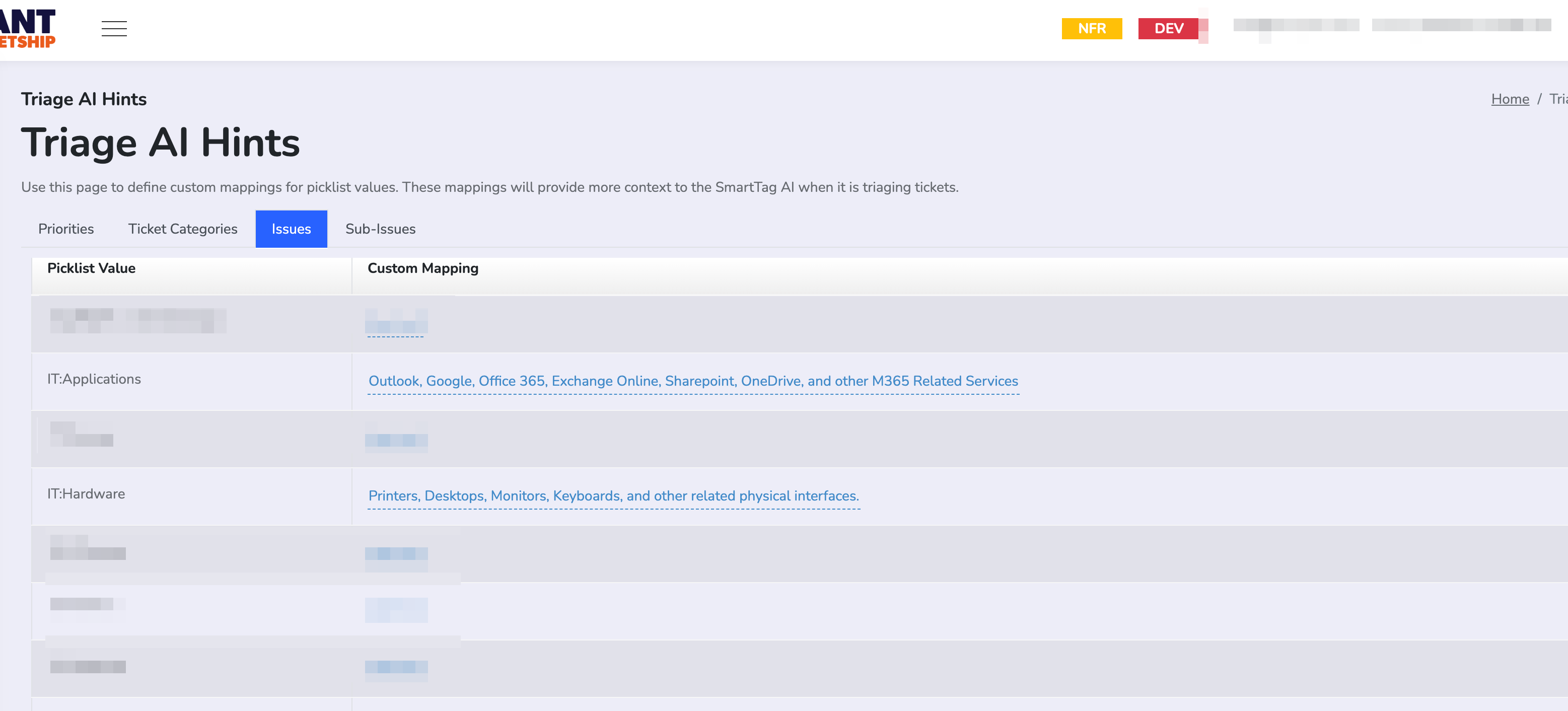 Unique Issue Names: Guiding the AI on how to categorize specialized internal service types that don't follow natural naming conventions.