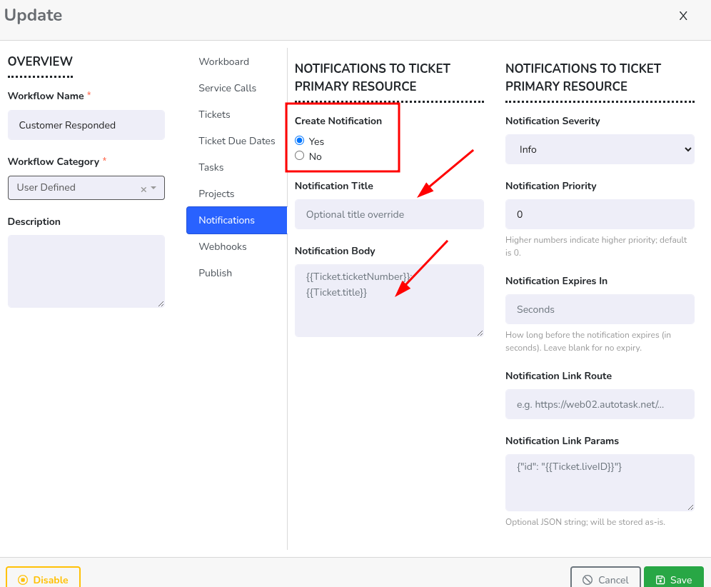 Instead of your techs constantly watching for tickets that change to Customer Responded, you can create a Customer Responded workflow that triggers a Resource Notification. This instantly alerts the assigned resource that the customer replied.