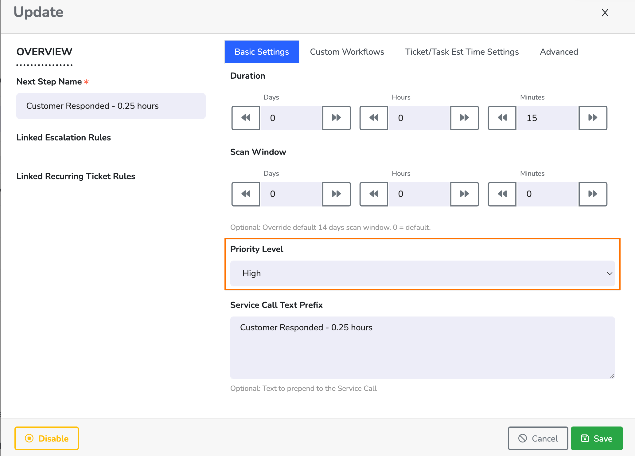 - On Next Step Rule > Set it to Customer Responded - 0.25 hours. Then hit save.